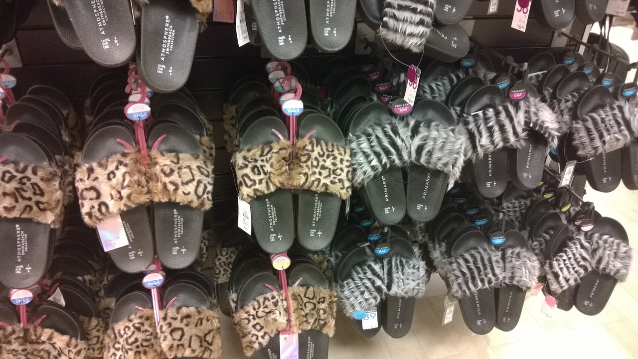 Não há dúvida que o fashion hit deste Verão foi este modelito de chinelo (muito procurado na Primark). Este animal print é um must have (corram que ainda vão a tempo), mas também há o modelito fantástico com o pêlo côr de rosa. Não contando com modelos muito mais à frente (exclusivos certamente) como vi hoje nos pés de uma senhora (com umas unhas muito grandes e sujas) em laranja choque com franjas e berloques nas pontas. Mas por que é que sou uma pessoa tão out? É que desde sempre me lembro de odiar o próprio chinelo base... 😌😌